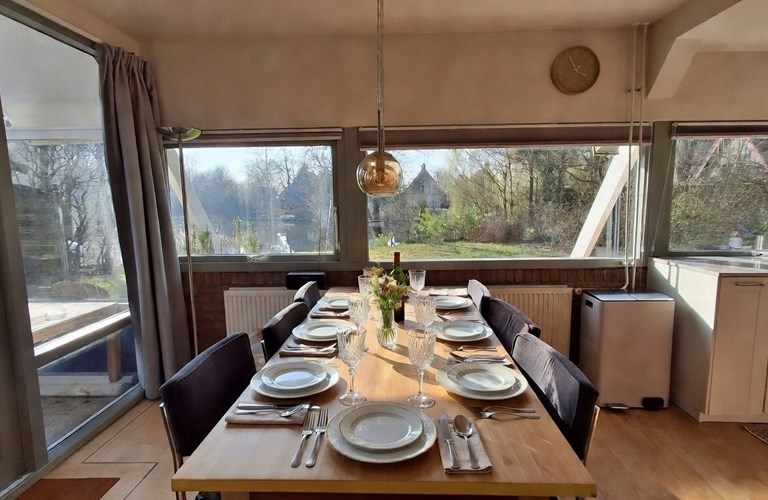 De royale woonkamer met grote ramen rondom zorgt voor een licht en open karakter, waarbij binnen naadloos overgaat in buiten en u altijd verbonden bent met de natuur. De moderne, open keuken is volledig uitgerust en sluit aan op de ruime eethoek, ideaal voor lange, gezellige avonden samen. Het huis beschikt over vier slaapkamers: twee comfortabele kamers met luxe tweepersoonsbedden en twee slaapkamers met elk een eenpersoonsbed, waardoor het perfect is voor gezinnen, meerdere generaties of een verblijf met vrienden waarbij iedereen zijn eigen plek heeft. De moderne badkamer is voorzien van een ruime inloopdouche en er is een apart toilet.